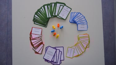 - De spelkaarten: Vormgeving van de vragen, opdrachten en actiekaarten.